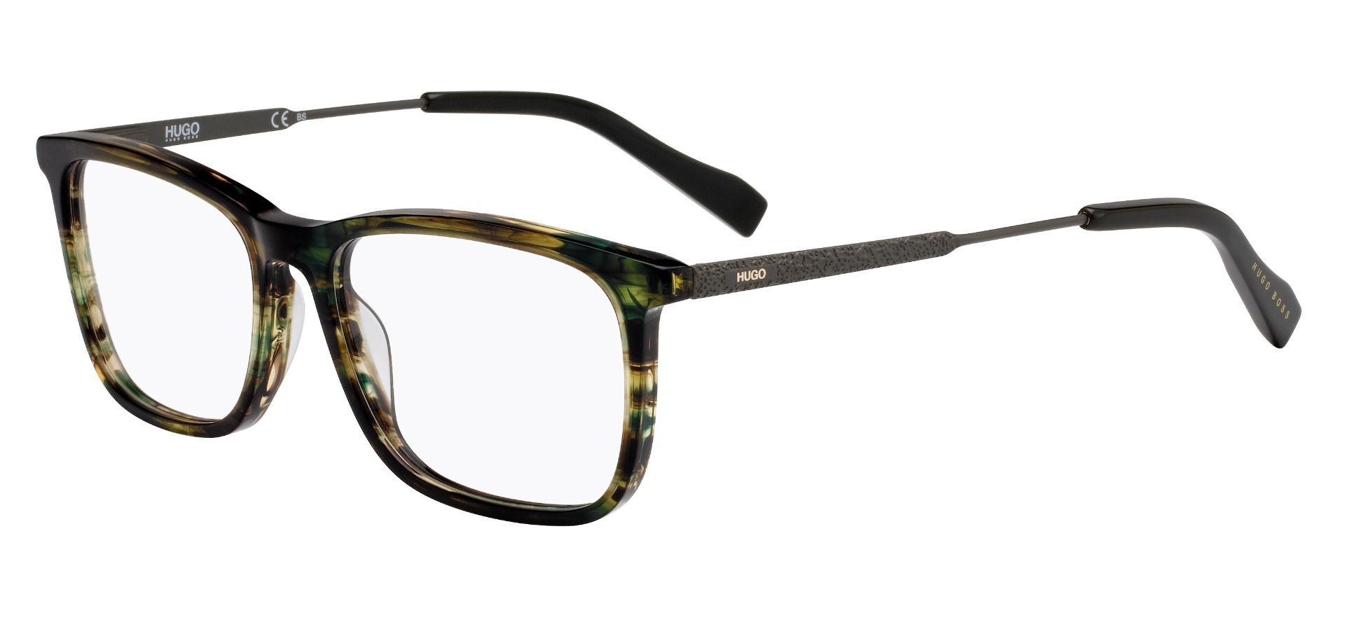 Postaw na najwyższą jakość i wybierz wyraziste oprawki do okularów marki BOSS. Te oprawki do okularów wykonane są z acetatu co zapewnia wyższą odporność na uszkodzenia. Zauszniki mają nadruk laserowy z logo HUGO.